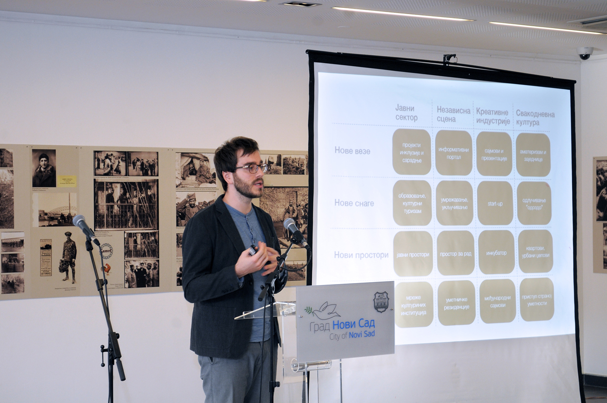 Стратегија се заснива на четири основна стуба: (1) јавне институције културе, (2) независна културна сцена, (3) културне и креативне индустрије и (4) свакодневна култура грађана и аматеризам. Свако од ових поља делатности поседује специфичне изазове и могућности, ресурсе и потребе, те су програми који се предлажу управо засновани на специфичностима сваког од њих.У оним аспектима у којима активности решавају заједничке потребе и проблеме, предлагаће се трансверзални пројекти. У оквиру сваког од стубова, предвиђају се интервенције у виду пројеката, програма и иницијатива које иду у четири правца деловања, односно четири теме: а) Нове везе (Re-connect) са идејом изградње заједништва кроз креативно стваралаштво. Реч је о пројектима који се баве успостављањем нових веза или поновним успостављањем старих, између удаљених група, делатности и заједница, који стреме друштвеној кохезији; б) Нове снаге (Empower), која тежи оснаживању капацитета појединаца и организација за учешће у локалној привреди, култури и политици; в) Нови простори (Localize), тема која стреми уређењу постојећих и креирању нових јавних простора за сусрет култура, предузетништво у култури и културни развој; г) Нова Европа (European look) са основним задатаком оснаживања постојећих и креирање нових културних, друштвених, политичких и економских веза локалних актера и иностраних партнера из европског простора, односно профилисању Новог Сада као културне престонице Европе, најпре кроз стварање нових веза са европским културним простором, као и кроз откривање и активирање постојећих.